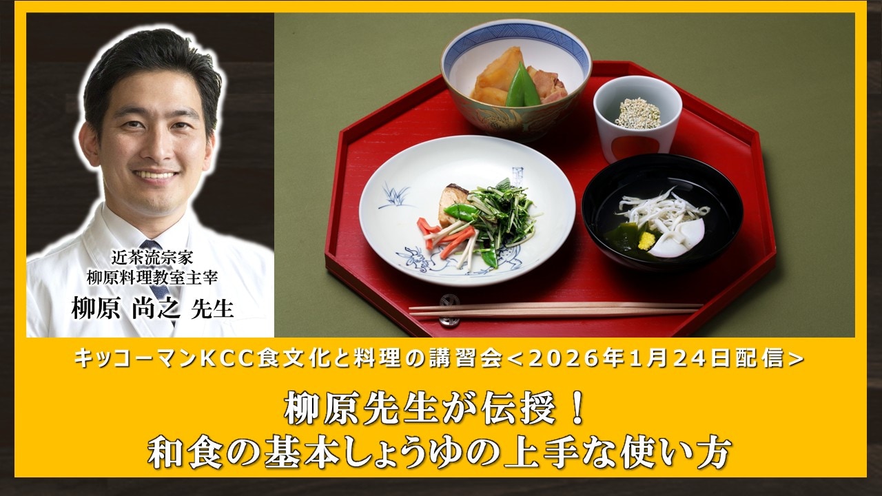 2026年1月24日KCC食文化と料理の講習会は、近茶流宗家、柳原料理教室主宰の柳原尚之先生をお招きし、「柳原先生が伝授!和食の基本 しょうゆの上手な使い方」をテーマに開催しました。