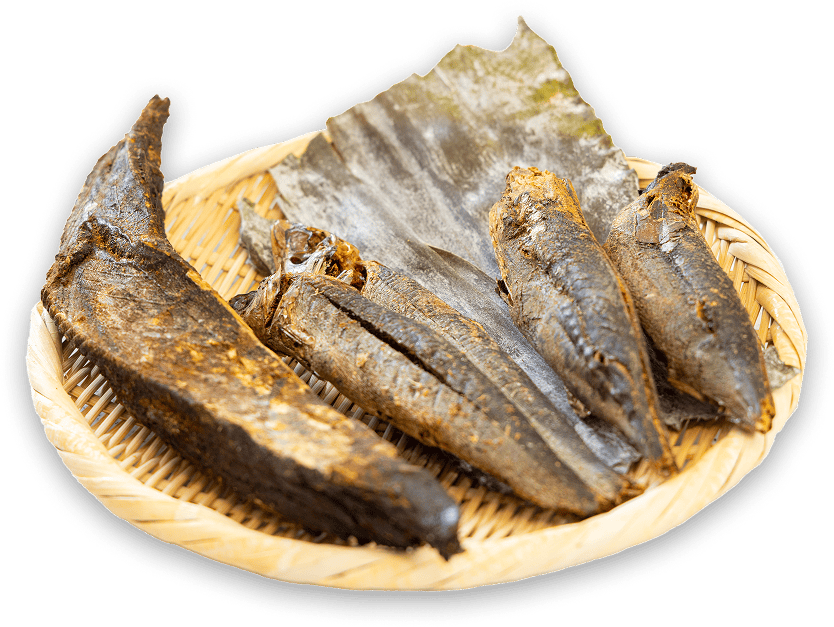 「濃いだし 本つゆ」のパッケージ裏面を見てみると、「節」と書いてあります。つまり、「節」の状態で製造工場に入ってくることを示しています。