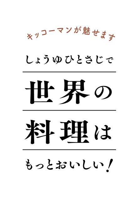 世界に広がるキッコーマンのしょうゆ。その複雑な「うまみ」を生かし、調理に加えることで、コク、深み、そして舌に残る余韻を世界各国の料理にもたらします。いわゆる「しょうゆ味」にするということではない、新しいしょうゆの魅力と使い方を掘り下げるレシピプロジェクト。おいしかったの声とともに「え、これしょうゆが入っているの?」といってもらえたら、それがゴールです。