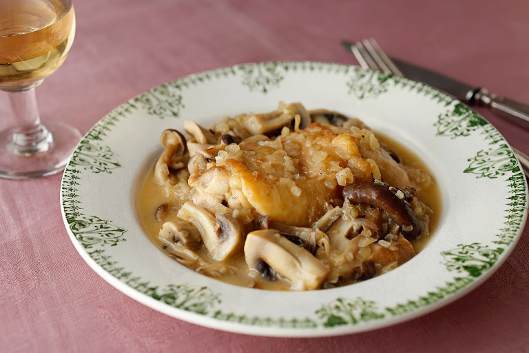 フランスの家庭で親しまれてきた定番料理。材料は鶏肉、きのこ、玉ねぎとシンプル。しょうゆを上手に使えば、鶏肉やきのことうまみが重なり合い、奥行きのある味わいに。