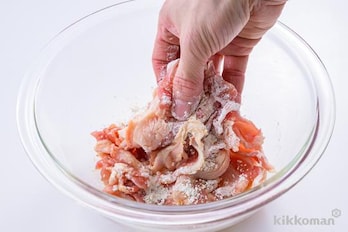 豚肉は食べやすい大きさに切り、(A)で下味をつけて小麦粉をまぶす。