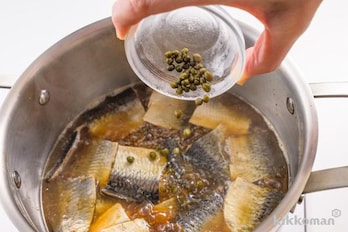 山椒の実を加えて弱火にし、汁けがなくなるまで煮る。