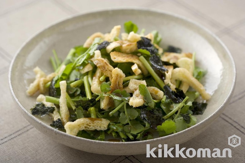 せりと油揚げ、のりのサラダ【しょうゆとごま油で後引く人気の味付け】