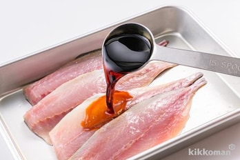 あじはキッチンペーパーで水けをよく拭き、しょうゆをまぶして10分おく。水けを拭き取り、小麦粉をまぶす。