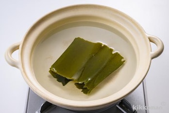 鍋に水800mlと昆布を入れ、30分ほどおく。