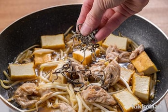 豚肉に火が通ったら、もやしを加えてさっと炒め、(A)を加えてひと煮立ちさせる。(B)の水溶き片栗粉をよく混ぜてから回し入れ、とろみがつくまで混ぜながら加熱する。