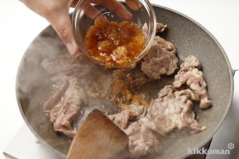 動かさずに2分焼き、周りが白くなってきたら裏返す。フライパンの中央をあけ、そこに(A)を加え、十分に煮立たせて、1~2分かけて全体に味をからめる。【減塩ポイント】すりおろしたしょうがとにんにくを煮立たせ、味を凝縮させれば、少ない塩分でも味が決まります。にんにくと砂糖でとろみがつき、味を濃く感じられます。