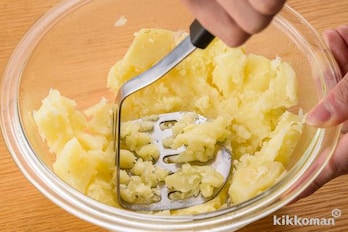 やけどしないように取り出して、余分な水けをきる。ボウルに入れ、熱いうちにバター、こしょうを加えてマッシャー(なければフォーク)でつぶす。