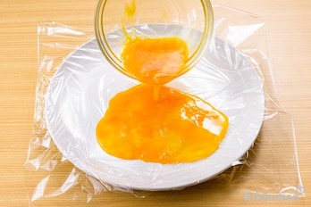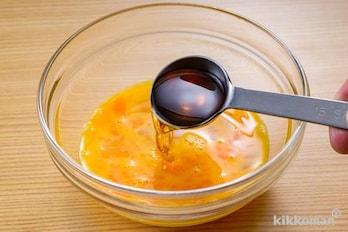 卵は溶きほぐし、白だしを混ぜる。