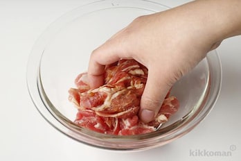 肉は大きければ半分に切って、(A)の下味をからめる。