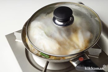 ぬらしたキッチンペーパーをかぶせ、ふたをずらしてのせ、弱火で7~8分煮る。火を止めて、そのまま10分蒸らす。【減塩ポイント】ぬらしたキッチンペーパーで落としぶたをして、塩分・水分の少ない煮汁でしっかり味をいきわたらせます。