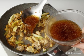(A)を少しずつ加え、煮立ったら弱火で1分煮る。【減塩ポイント】しょうゆ、みりん、水に削り節を直接混ぜた(A)は、いわば簡易だし。削り節は表面積が多いのでうまみが出やすいうえ、そばにまんべんなく貼りつくので、ひと口ごとにうまみを感じられます。