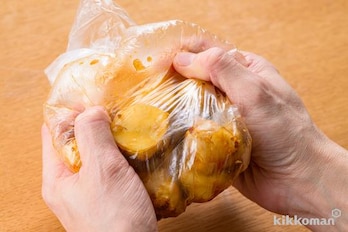 菊芋は皮つきのままよく洗い、一口大に切ってポリ袋に入れる。(A)を加えて全体になじませ、20分ほどおく。