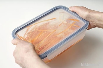 密閉できる保存容器に(1)を入れ、(A)を加える。