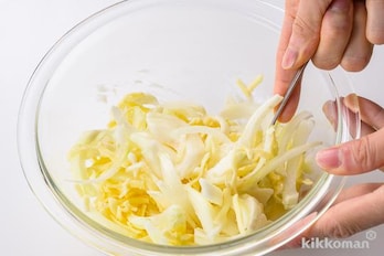 ボウルに(A)を混ぜ合わせる。玉ねぎ、ピザ用チーズを加えて全体をしっかり混ぜ合わせる。