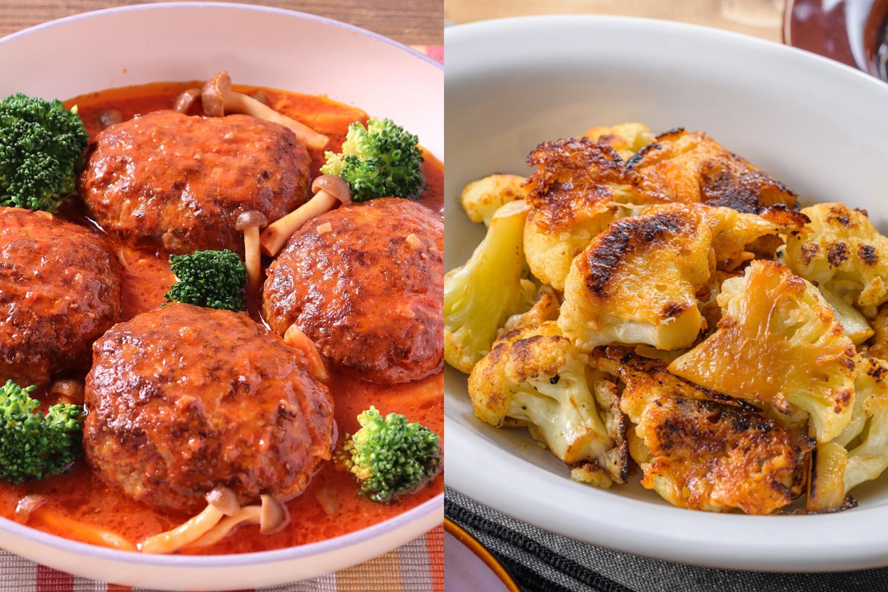 トマト煮込みハンバーグ&カリフラワーのチーズ焼き(2.0g)
