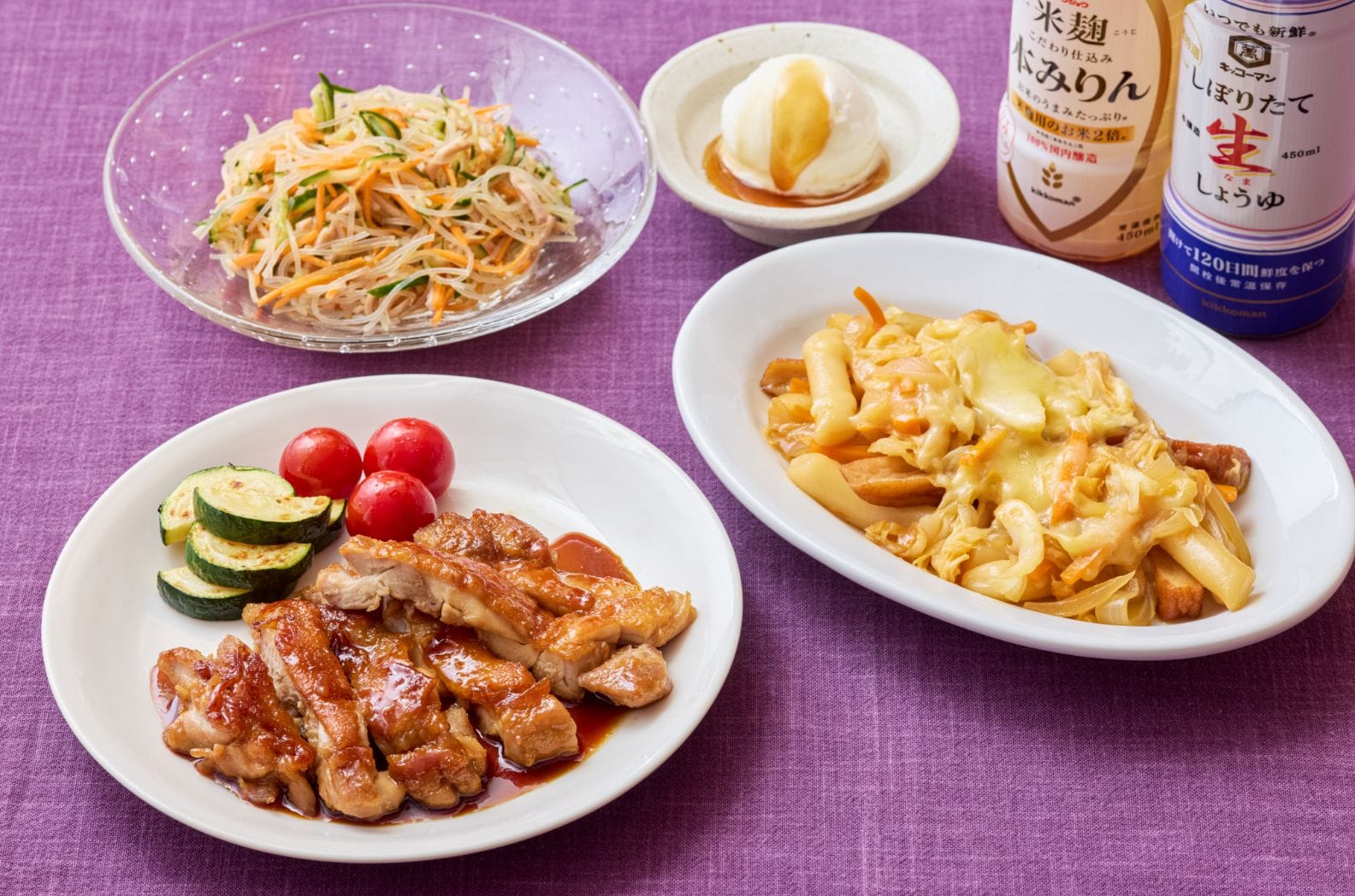 しょうゆ、みりん、コチュジャンの合わせ調味料でトッポギとさつま揚げを煮込みながら、照り焼きではグリルを同時進行。みなさんはこの2品を料理します!