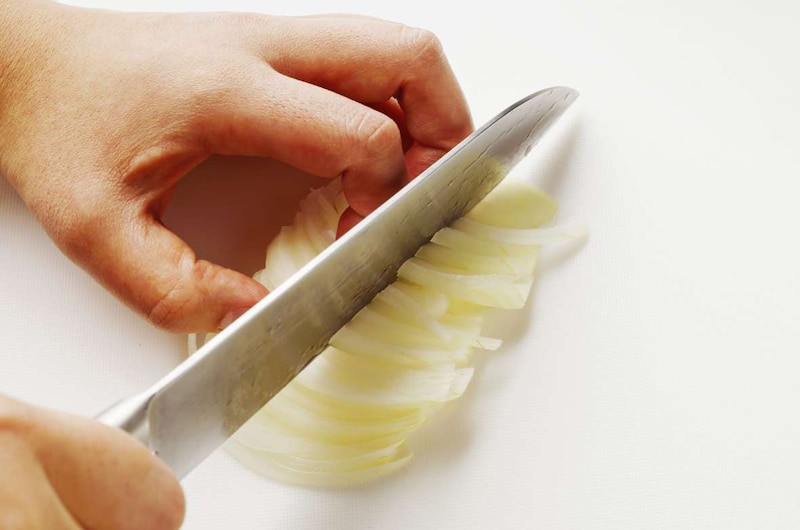 料理のとろみは味を感じやすくする要素。玉ねぎからもとろみとうまみをしっかり引き出すために、角切りではなく薄切りにします。
