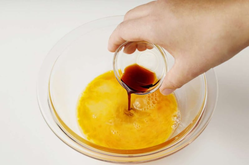 卵にしょうゆを混ぜる