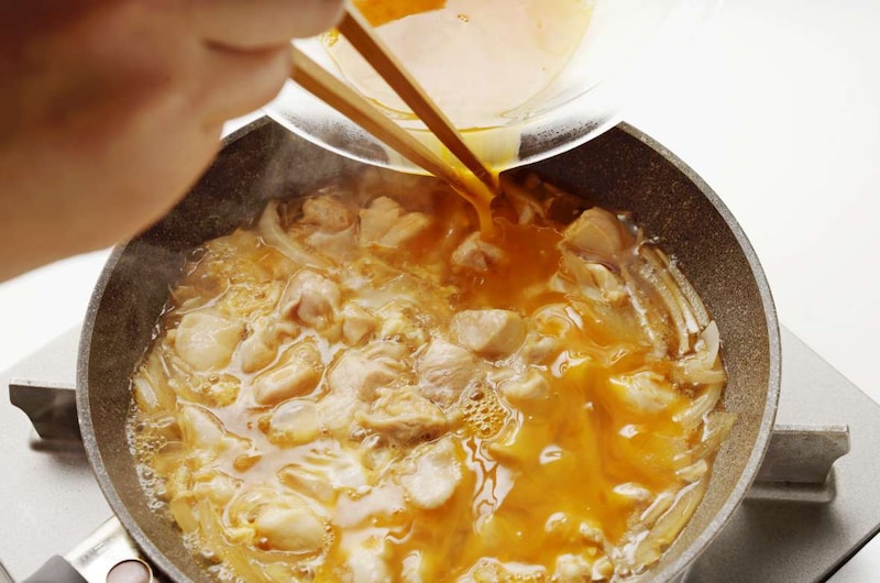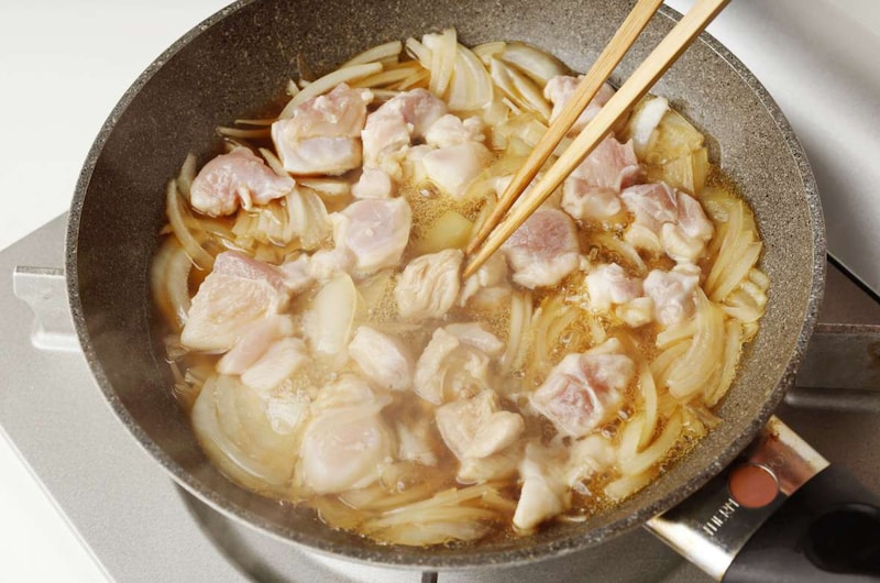 鶏肉と玉ねぎを煮る