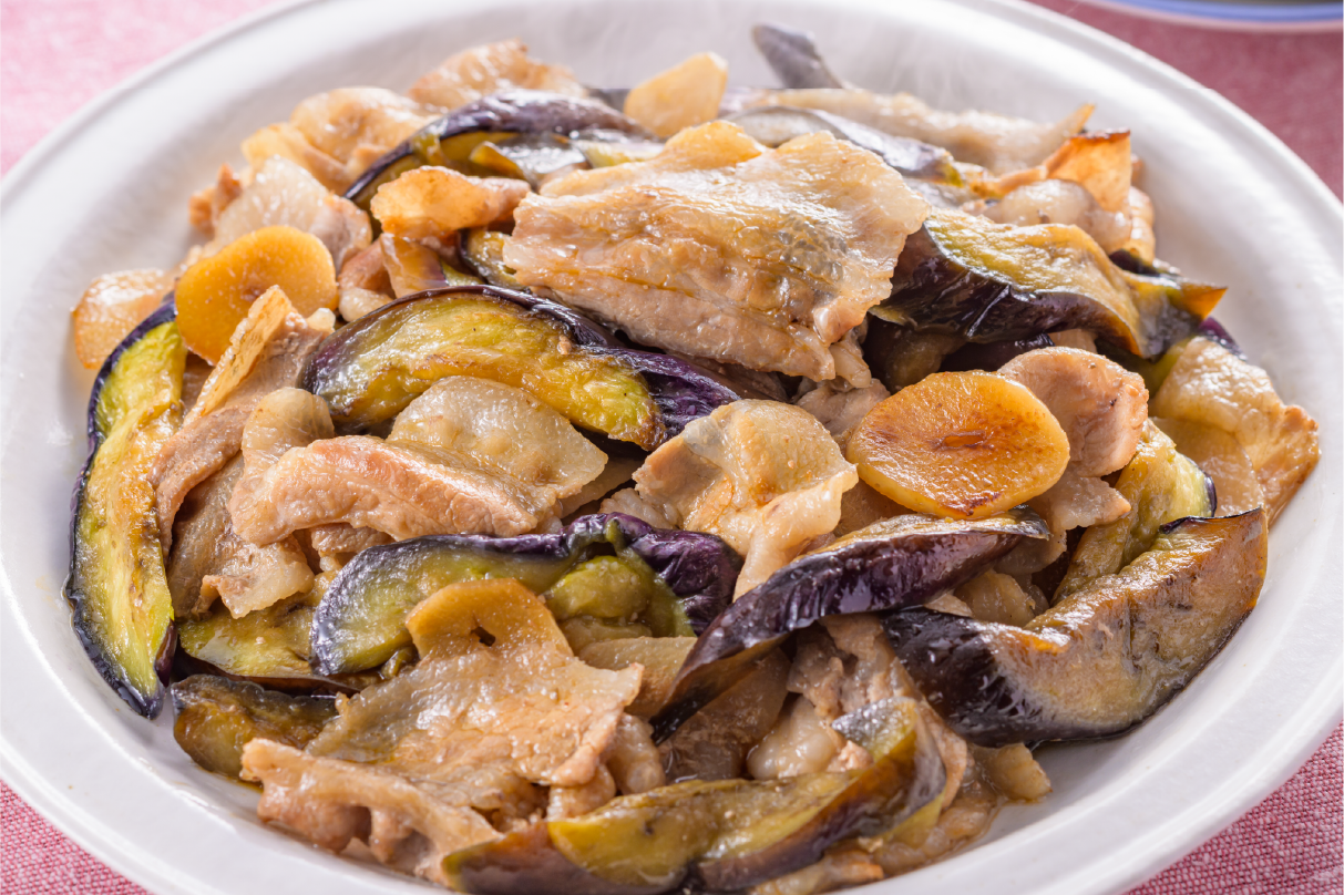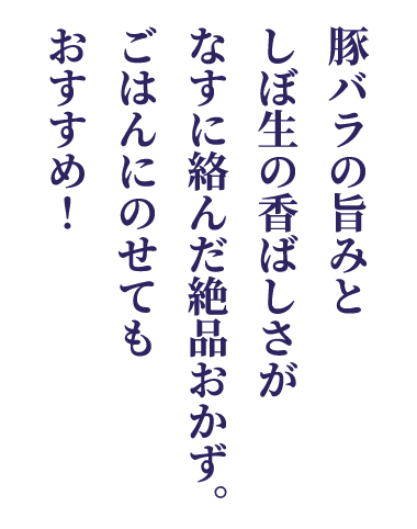 豚バラの旨みとしぼ生の香ばしさがなすに絡んだ