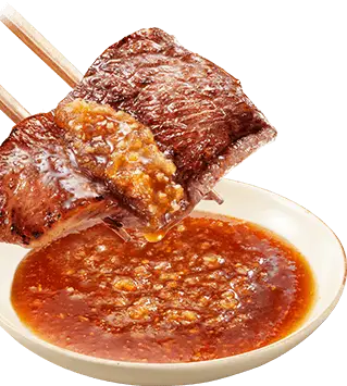 肉に絡む果実・野菜の具が入ったとろっとしたたれが肉にしっかりとからみ、お肉のおいしさを引き立てます。