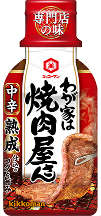 焼肉専門店の味を追求した、「わが家は焼肉屋さん」のこだわりのたれ。3種類のしょうゆと熟成仕込でつくられたコクと旨みのある熟成だれをベースに、ごま油と香味野菜や果物を加えました。焼肉はもちろん、さまざまな料理の味付けにもぴったり。素材のおいしさ引き立てる、万能調味料としても活躍します。